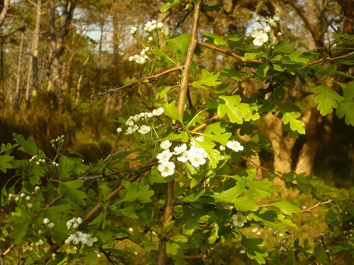 NPh/Ph – 2-5 m – Arbuste épineux, feuilles à 3-5 lobes longs ± aigus dentés – Corymbes de fleurs de Ø 1-1,5 cm blanches – « Fruits » subglobuleux rouges de 6-10 mm, à 1 noyau