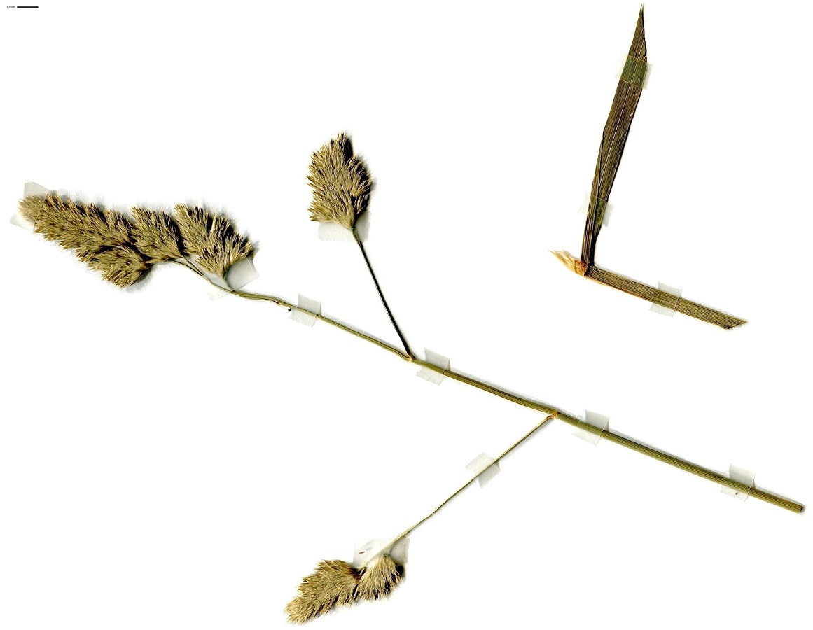 Hc – 5-15 dm – Robuste, élevé, feuilles planes assez larges, un peu scabres, ligule aiguë à lacérée – Panicule à rameaux < étalés à réfléchis, dénudés à la base, épillets agglomérés