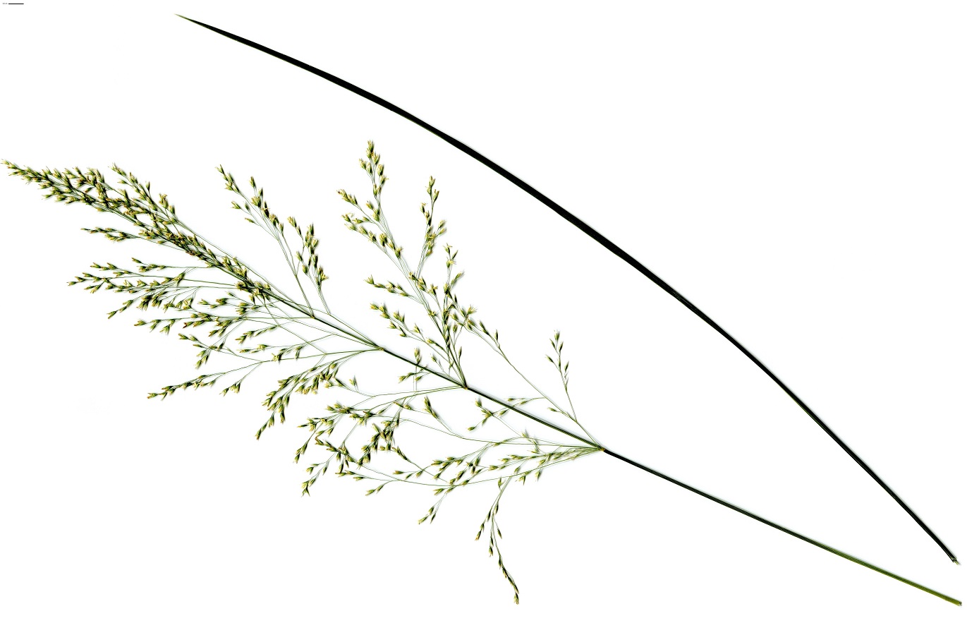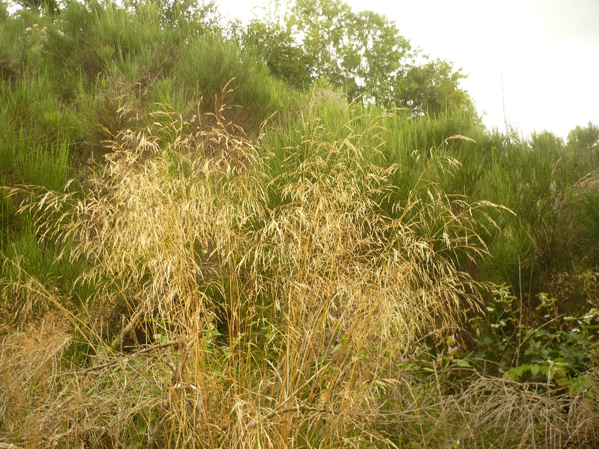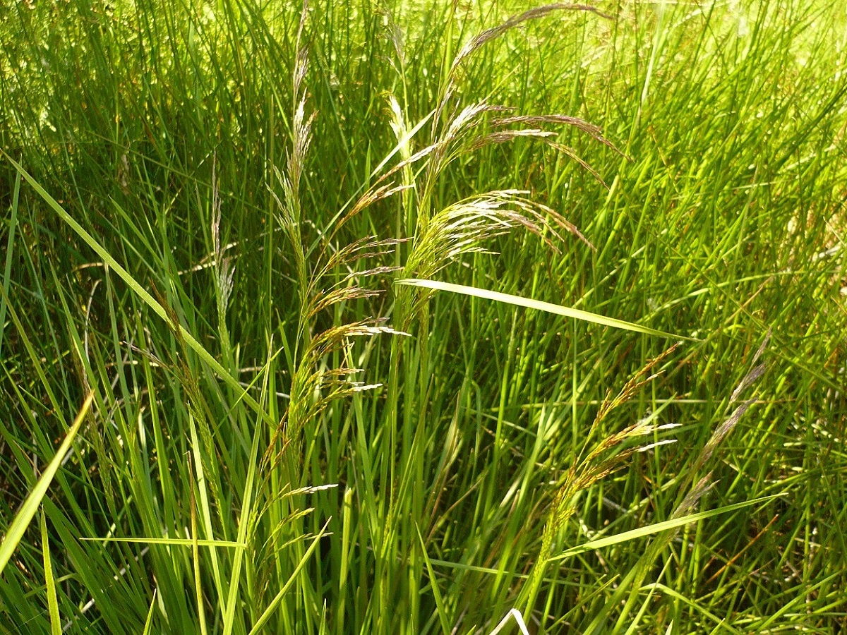 Hc – 5-10 dm – En touffe, tige rude, feuilles fasciculées planes, allongées, très aiguës, côtelées, ligule longue aiguë – Panicule ample, argentée, lemme à arête basale droite