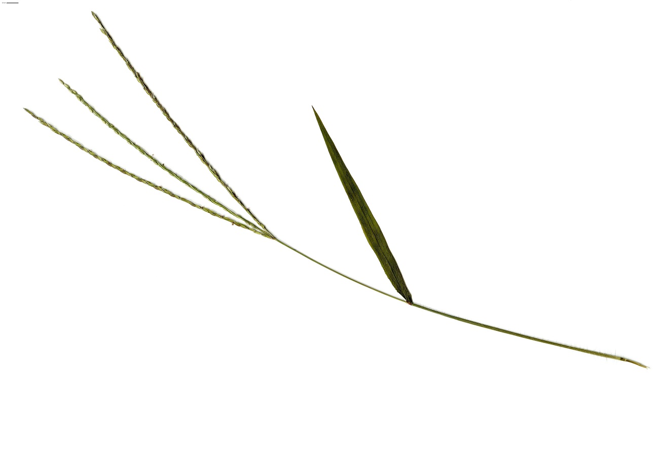 Th – 2-8 dm – Feuilles assez courtes et gaines velues, ligule courte denticulée – Inflorescence ramifiée à 3-10 épis longs et fins dressés à étalés, épillets oblongs, glume < petite