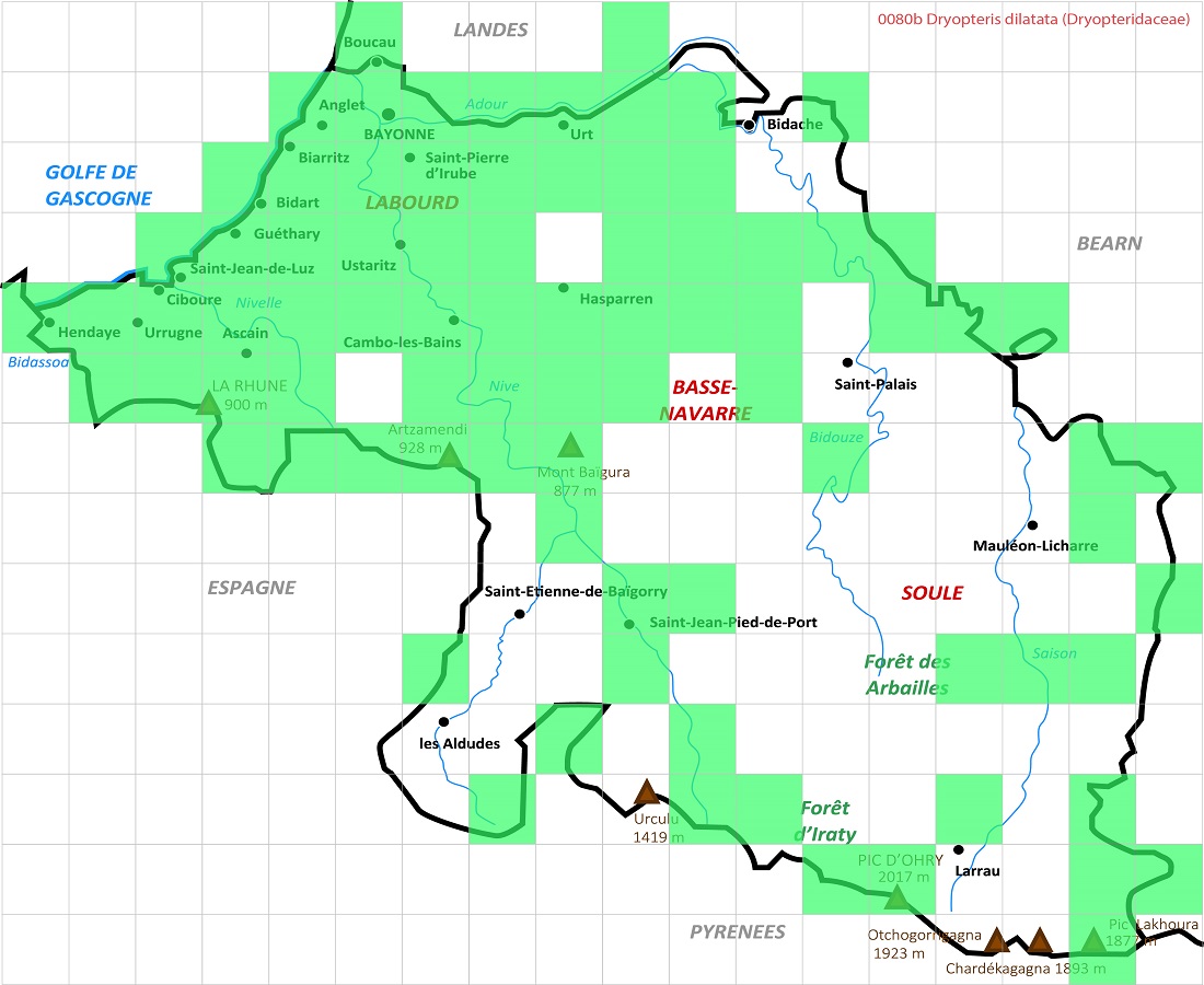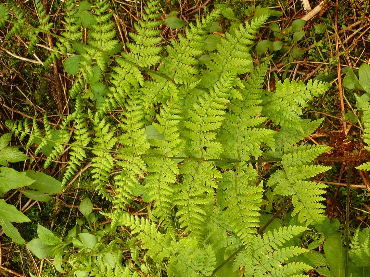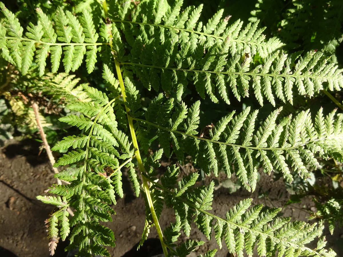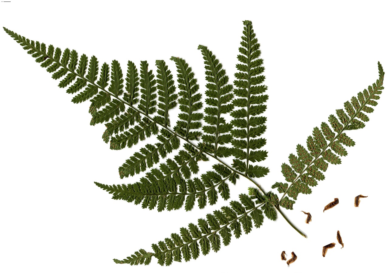 Hc – 6-12 dm – Limbe vert foncé triangulaire, 3 fois divisé, pennes basales très dissymétriques, écailles du pétiole denses, bicolores + foncées au centre – Sores brun foncé