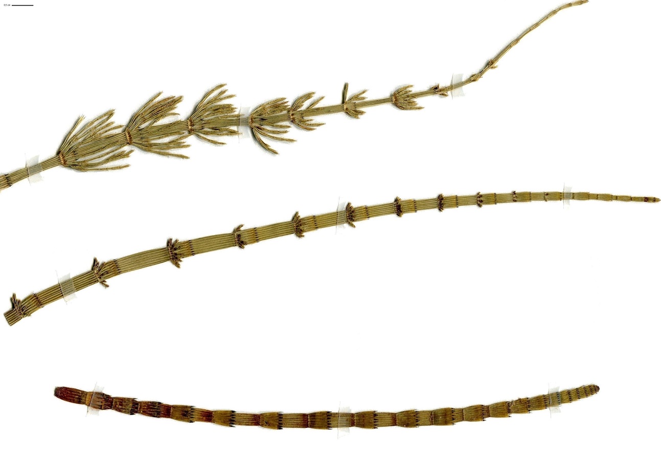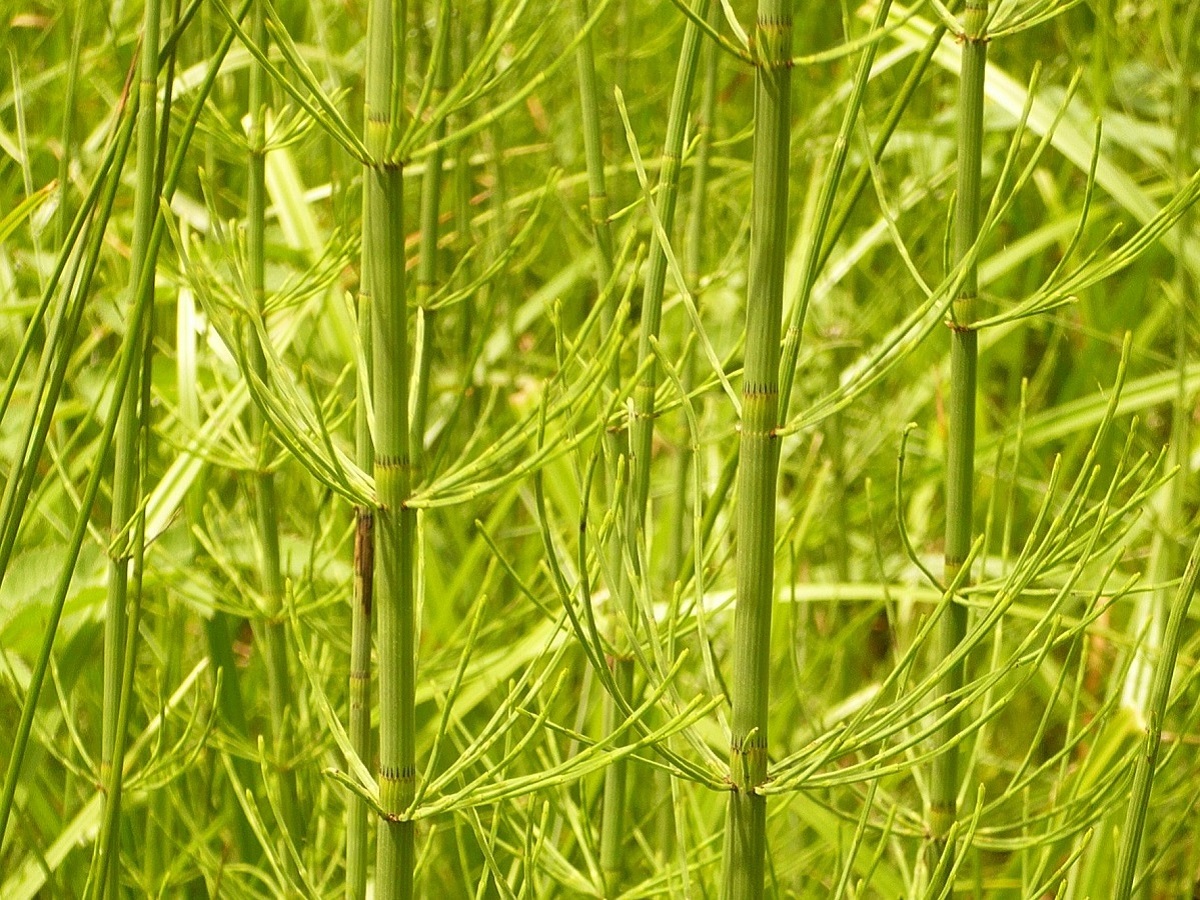 G à rhizome – 5-10 dm – Tiges vertes à verticilles de rameaux redressés, parfois simples, élancées, très creuses, à paroi fine – Épi terminal à sommet arrondi