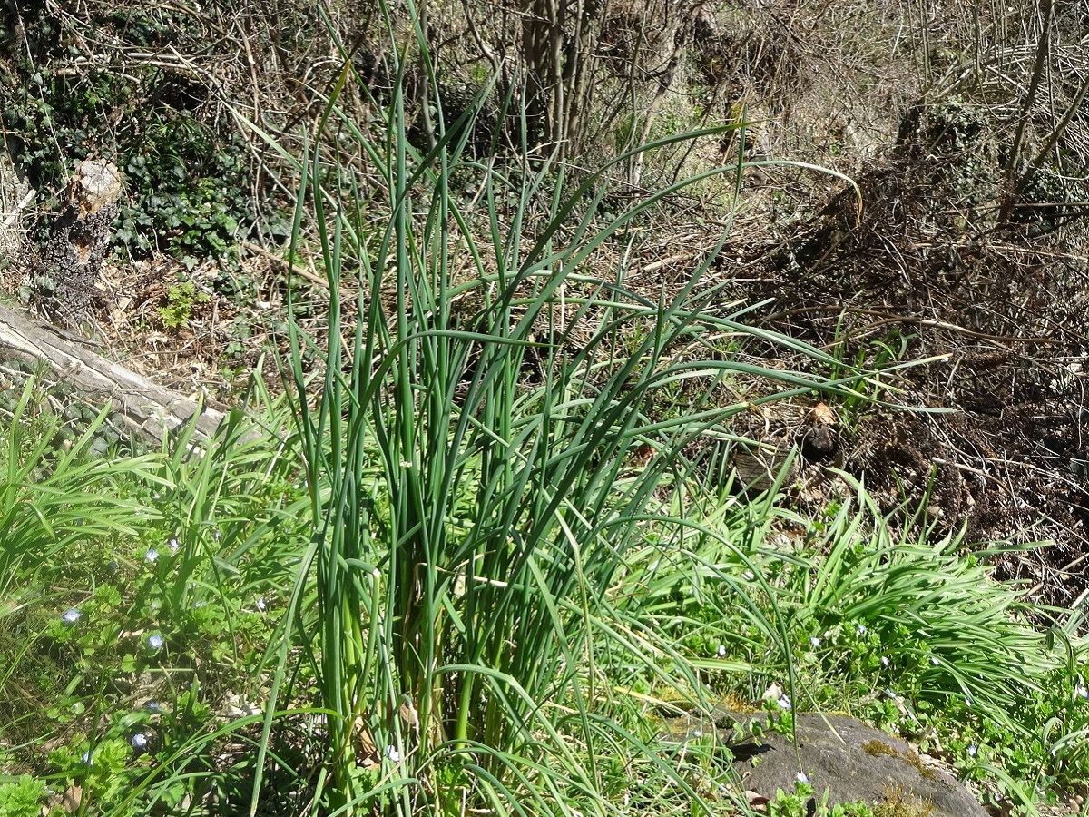 G à bulbe – 2-8 dm – Tige feuillée à la moitié <, feuilles basales ± cylindriques creuses, à odeur alliacée – Tête dense de bulbilles ± vivipares rouge brun, sans fleurs