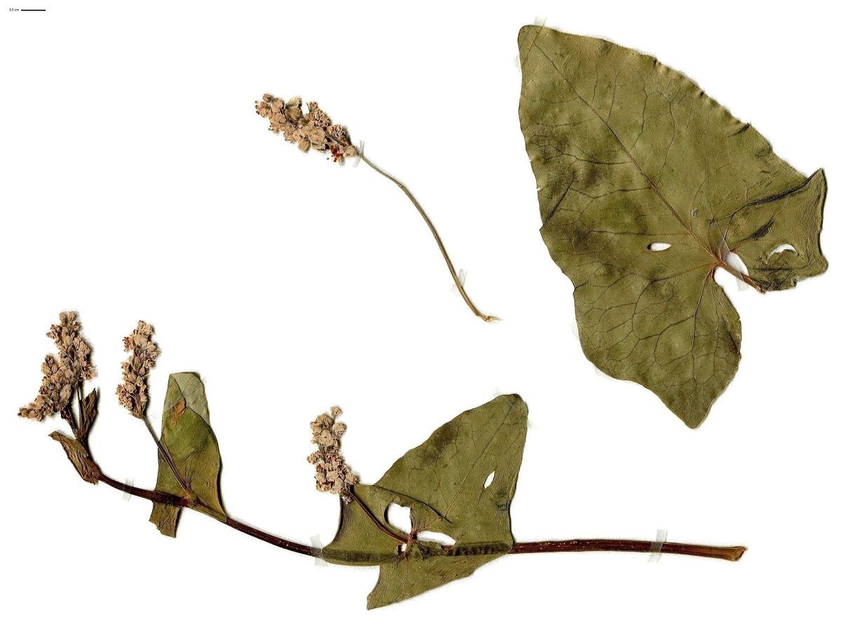 Th – 2-6 dm – Feuilles sagittées, plus longues que larges – Inflorescences axillaires courtes fournies, pédonculées de fleurs blanches ou rosées – Akène brun foncé, à faces lisses