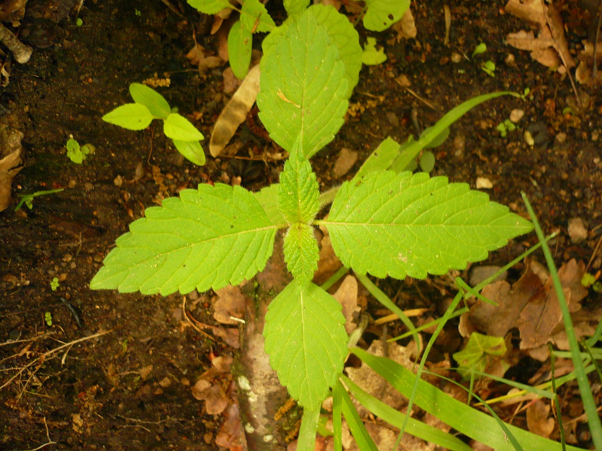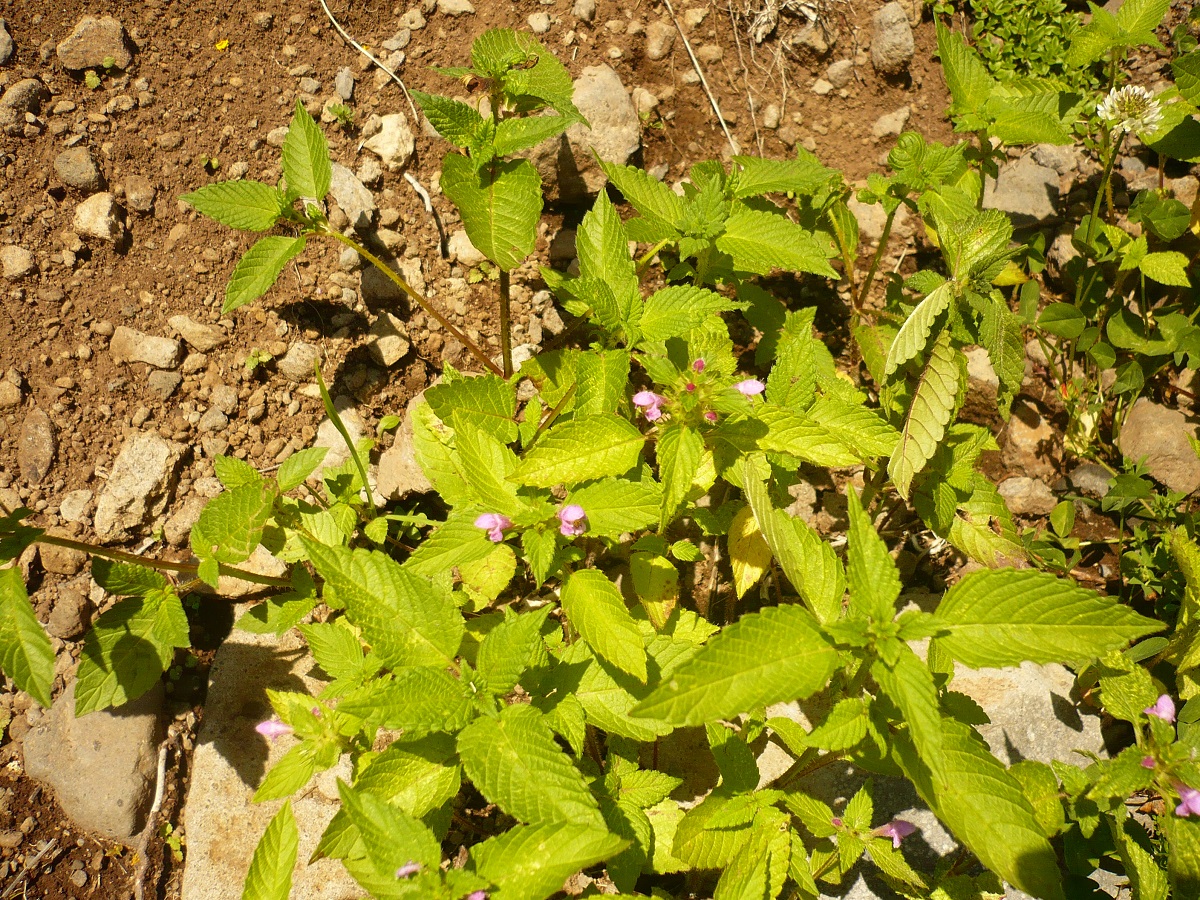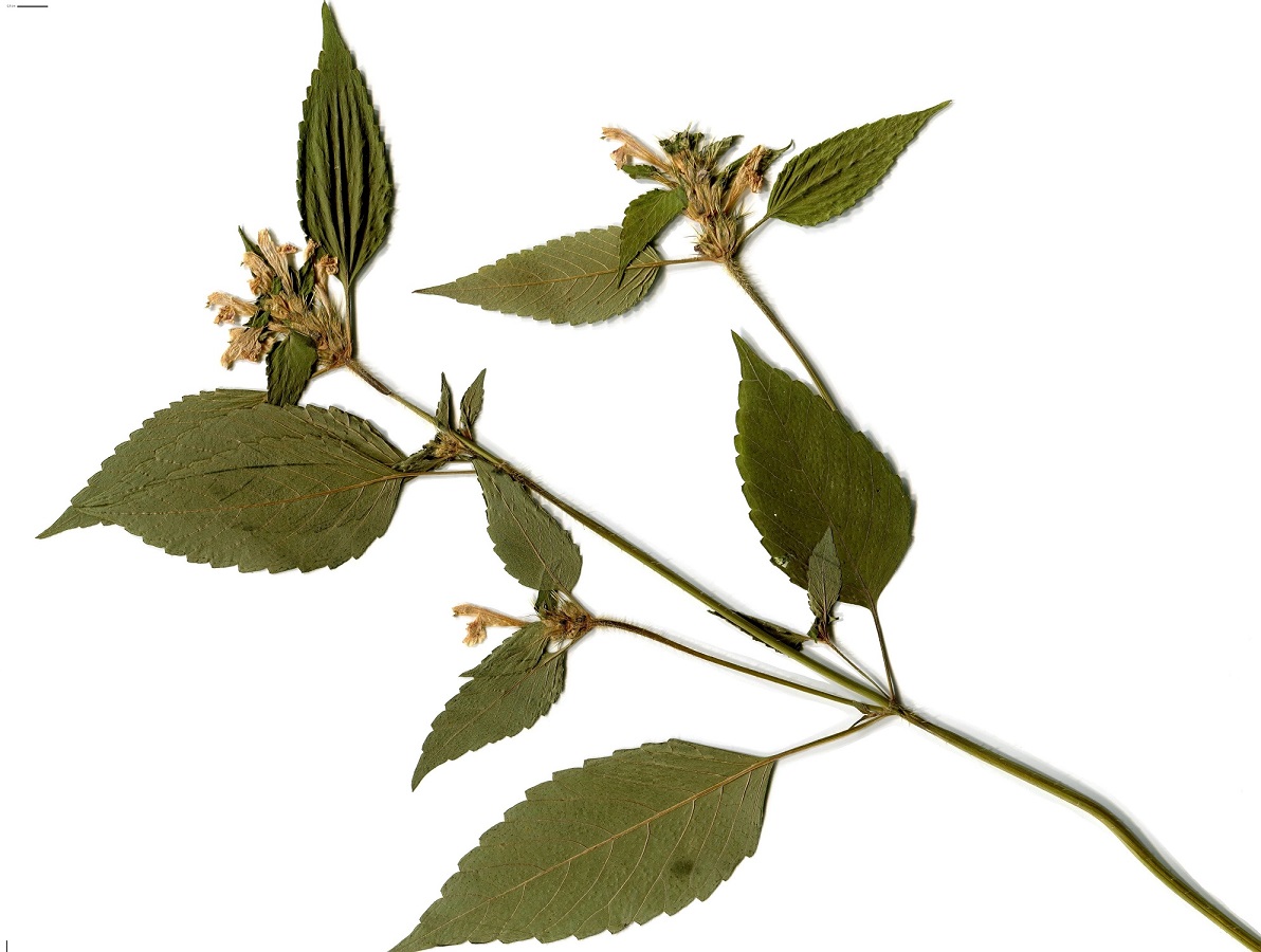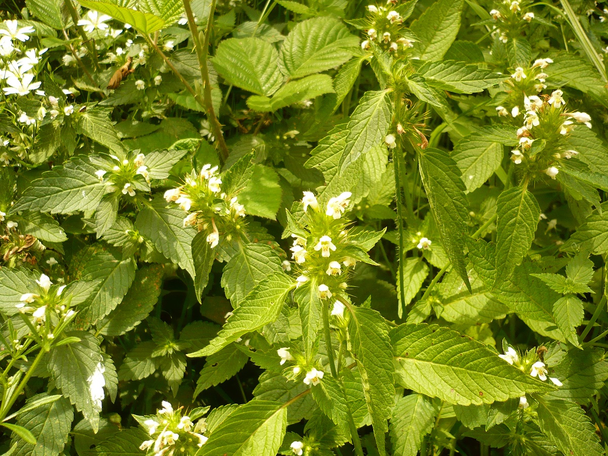 Th – 4-8 dm – Tige à poils rudes, renflée aux noeuds, feuilles ovales aiguës dentées – Inflorescence assez dense, corolle à tube court rose à blanche de L 1,5-2 cm, calice piquant