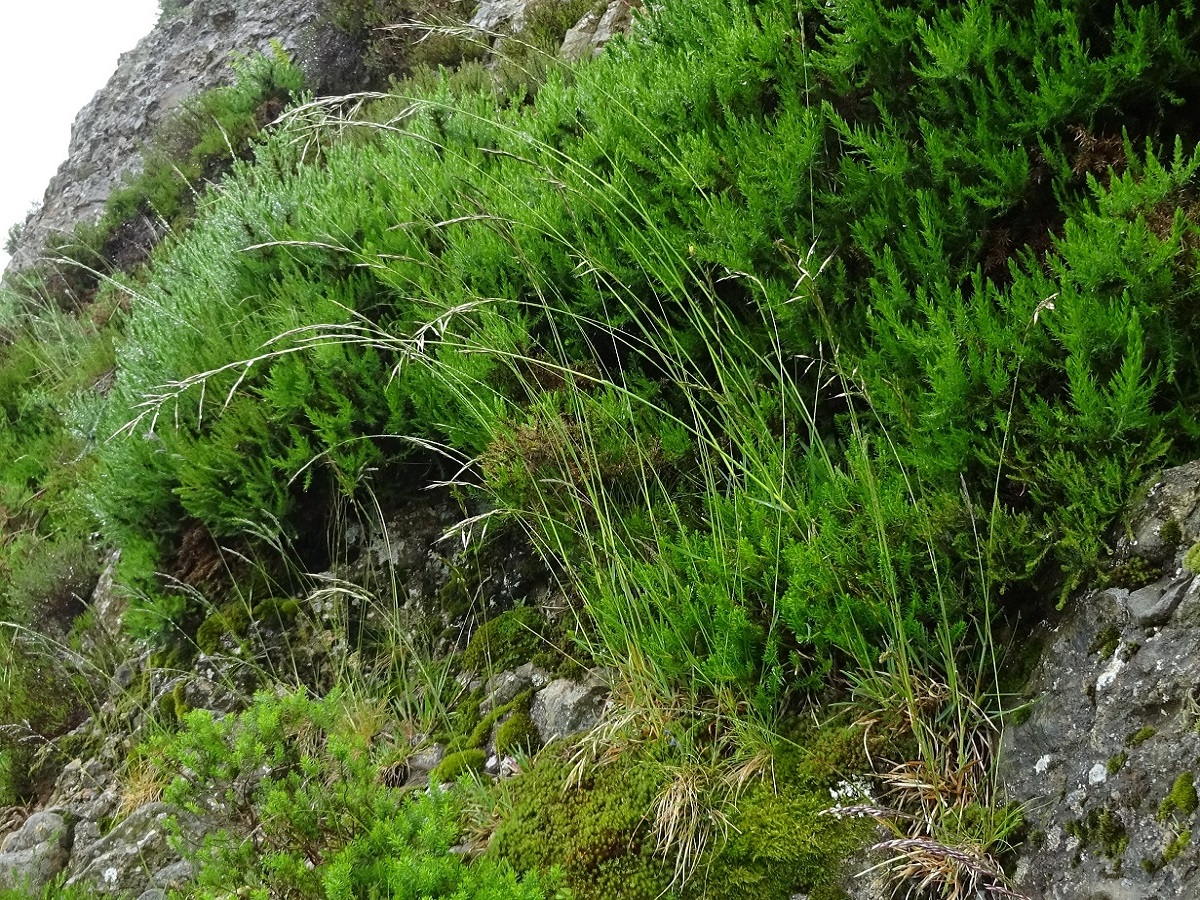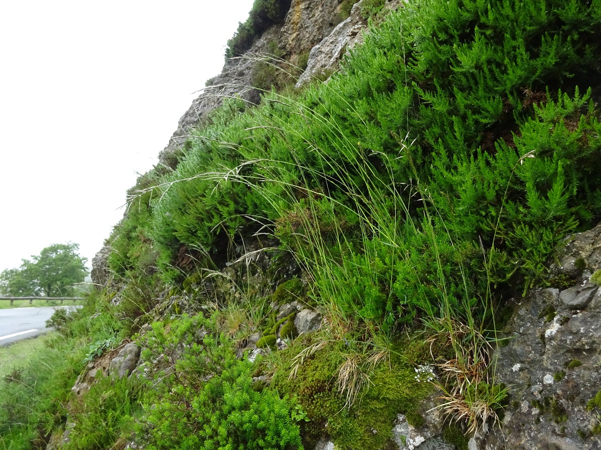 Hc – 4-10 dm – Feuilles basales distiques – Inflorescence assez étroite oblongue, lemme < brun rougeâtre à la base, bifide, poils de l’article < et du cal ≃, arêtes genouillées